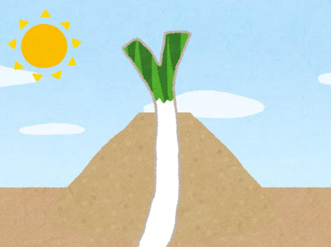 ねぎ農家さんは、成長に合わせて「土寄せ」という作業を行い、茎の根元に土を盛り上げて太陽の光が当たらないようにします。